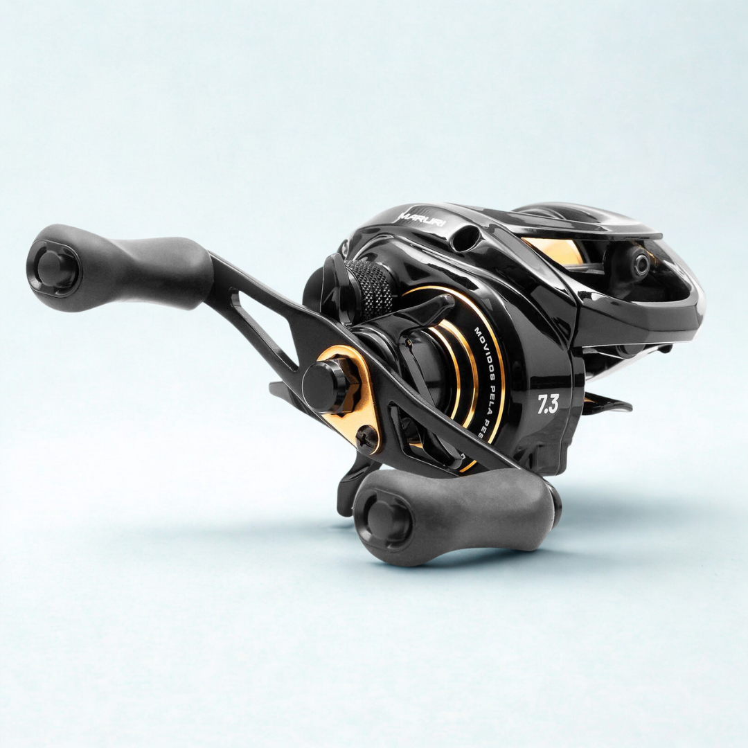 Equipada com 7 rolamentos (6+1), proporciona arremessos mais suaves e precisos, reduzindo esforços e aumentando o controle durante a pescaria. Seu recolhimento rápido de 7.3:1 é ideal para trabalhos com iscas artificiais, permitindo respostas rápidas e melhor acompanhamento do nado da isca.