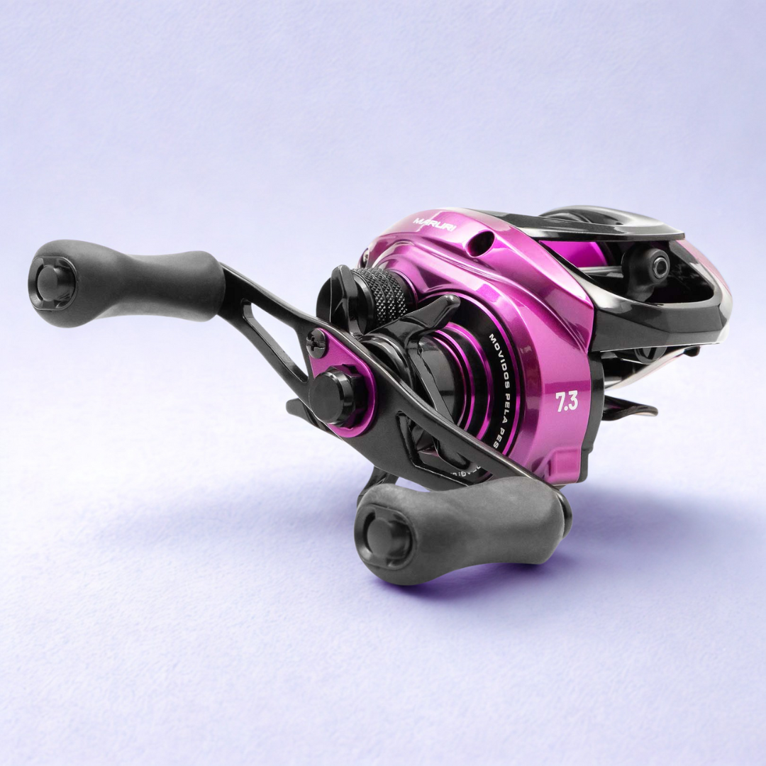 Projetada para facilitar o uso, conta com corpo em grafite leve e resistente, ideal para longas jornadas de pesca. Seu sistema de 6 rolamentos + 1 de rolete garante arremessos suaves e recolhimento eficiente. A relação de 7.3:1 oferece rapidez na recuperação da linha, sendo ideal para uso com iscas artificiais.