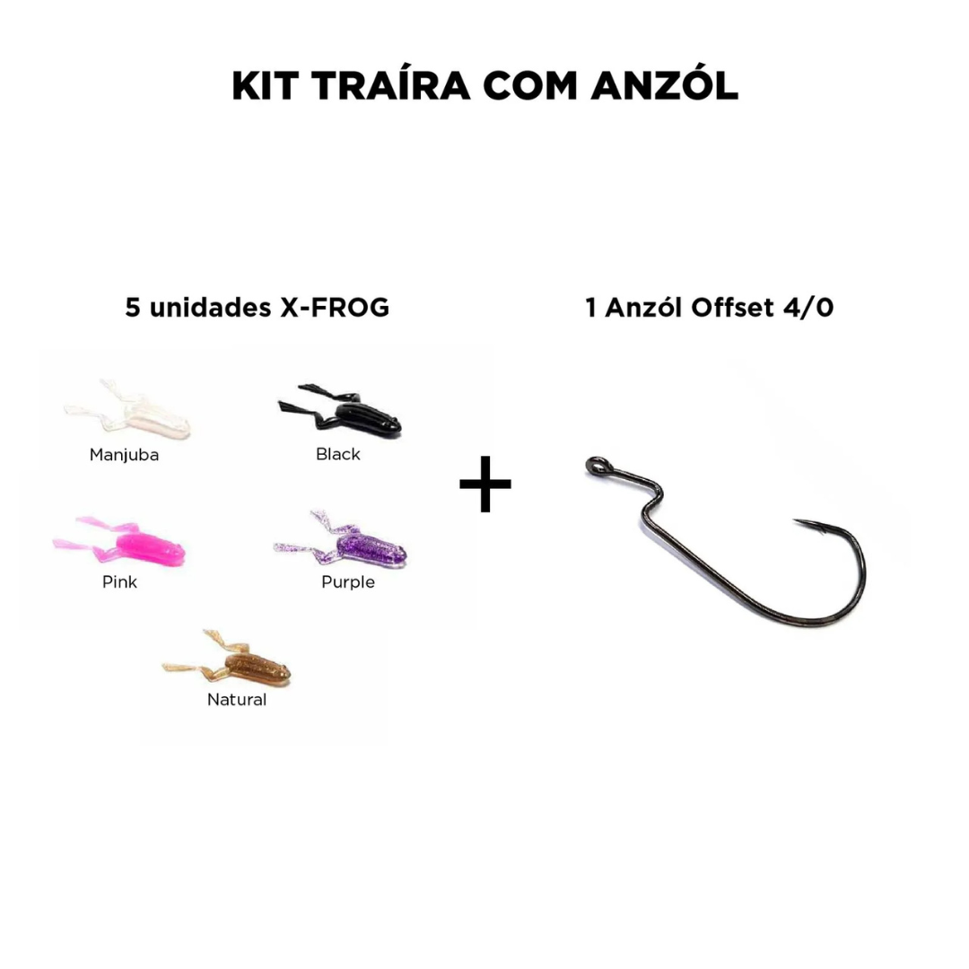 Nesse kit você conta com 5 únidades da Isca Shad X-Frog de variedades de cores diferentes uma da outra. Além disso conta também com 1 unidade de anzol offset 4/0