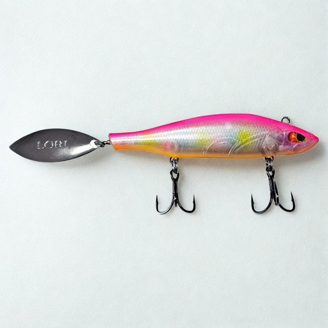 A Lori Face 85 é uma isca de meia-água/fundo com ação sinking, projetada para entregar vibração intensa e alta eficiência nas capturas. O spinner traseiro em lâmina metálica cria brilho e turbulência na queda e no recolhimento, enquanto o girador embutido evita que a garatéia lace a lâmina, mantendo o trabalho estável e livre de enroscos. Construída em ABS com ferragens reforçadas, oferece durabilidade e excelente desempenho em arremessos e recuperação.
