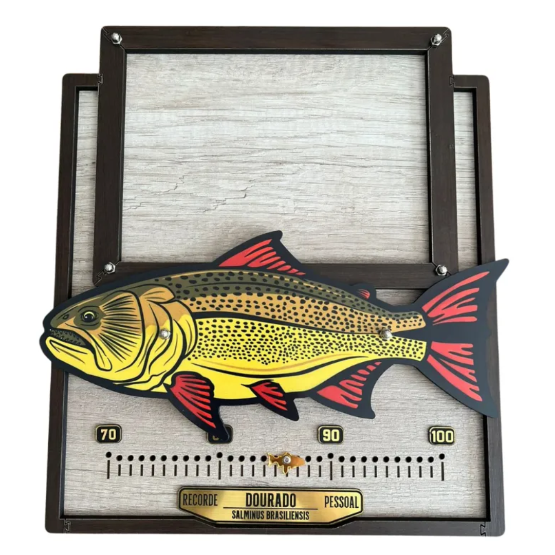 O Quadro Recorde de Pesca é a escolha ideal para eternizar grandes capturas de forma elegante e temática. Disponível nas versões Dourado, Tucunaré Açu e Tucunaré Azul, o quadro combina decoração esportiva com a função de porta-retrato, valorizando a história de cada pescaria.